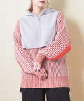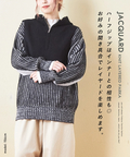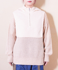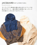 ピーチヤーン ジャガード ニット レイヤード風 パーカー