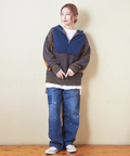 ハーフZIPなので、開けてTシャツなどをレイヤードしたスタイルもオススメ。