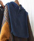 ニットにフードベストを重ね着したような雰囲気に。