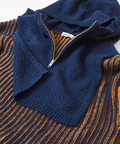 パーツごとに編地とカラーを切り替えたこだわりの一着です。