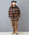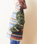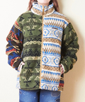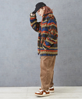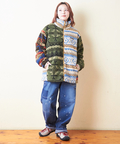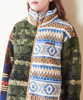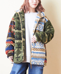 総柄 ボア ジップアップ スタンドカラー ジャケット