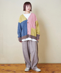 印象的な配色ブロッキングに袖プリントをあしらい、コーデの主役にぴったり。
