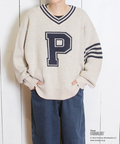 【インスタグラム先行公開★11月上旬販売予定】PEANUTS ( ピーナッツ ) ネップヤーン ライン入り Vネック プルオーバー ニット