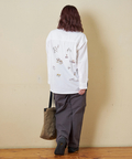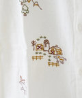 素朴なタッチの刺繍モチーフが、どこかノスタルジックな雰囲気を演出。