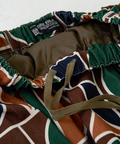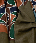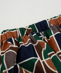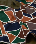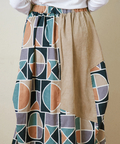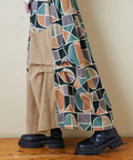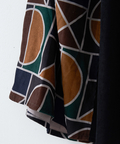 レトロな雰囲気の幾何学模様を無地と切り替えた存在感たっぷりのデザイン。
