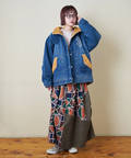 【秋新作】シャツコール 総柄 プリント 切替 サイドタック ギャザースカート