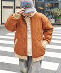 ふっくら軽い着心地と、やさしい表情のひょうたんキルトが魅力の中綿ブルゾン。