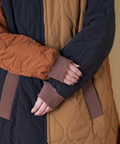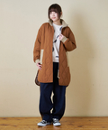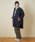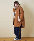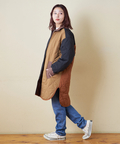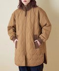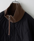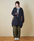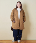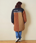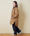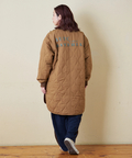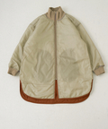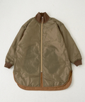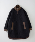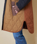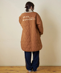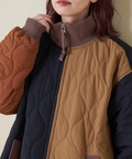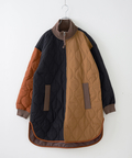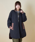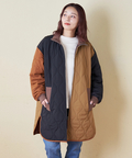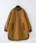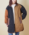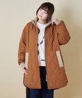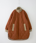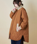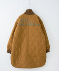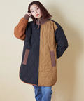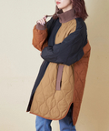 やさしい表情のひょうたんキルトと配色リブが印象的なロング丈ブルゾン。