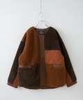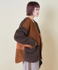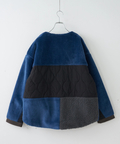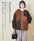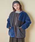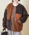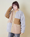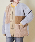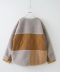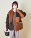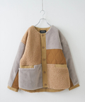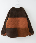 【秋新作】ボア × ファー × キルト 切替 ノーカラー ジャケット