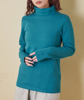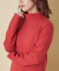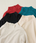 立ち上がりすぎない程よい高さのハイネックで、首元まであたたかく包み込み快適に。