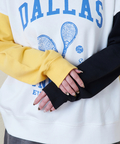テニスモチーフのプリントがぱっと目を惹くスウェット。