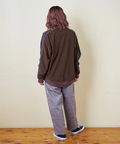 落ち着いたカラーに配色ラインを効かせ、コーデュロイ調の細畝素材がレトロな雰囲気を演出。