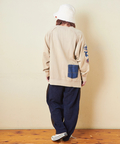 落ち着いたカラーに配色ラインを効かせ、コーデュロイ調の細畝素材がレトロな雰囲気を演出。