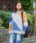 【秋冬新作】モヘアタッチ ニット ジャガード マーブル柄 プルオーバー