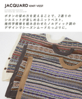 ボタンの留め方を変えることで、2通りのシルエットが楽しめるジャガードニットベスト。