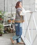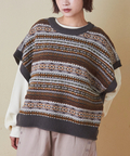 【秋新作】9NM ピーチヤーン 2Way ジャガード ニット ベスト