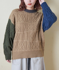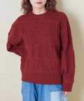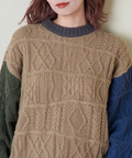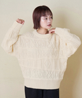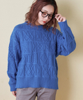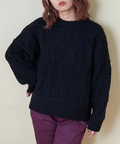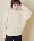 【秋新作】9NM ピーチヤーン アラン柄 プルオーバー ニット