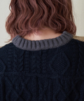 立体感のあるアラン編みがシンプルながらも存在感を放つニットプルオーバー。