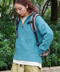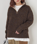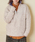 ふっくらとしたループヤーンで編み立てた、あたたかみのあるハーフジッププルオーバー。