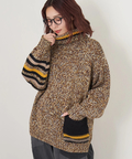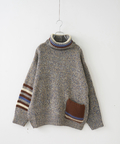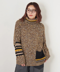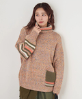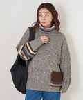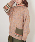 【秋冬新作】バルキー Ac8本 ミックス ニット ライン入り タートルネック プルオーバー