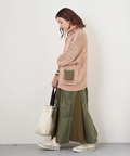 袖とポケットの配色ラインが、甘すぎず程よいアクセントに。