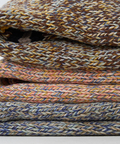 8色の糸を撚り合わせたミックスカラーが、表情豊かで温かみのある風合いに。