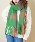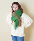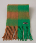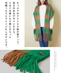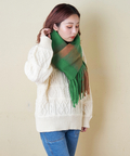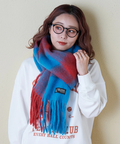 ぱっと目を惹くブロックチェックがカワイイ、ふっくらボリューム感のあるストール。