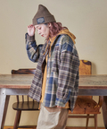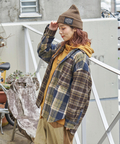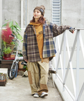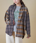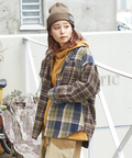 あたたかみのあるネルチェックを組み合わせたビッグシャツ。
