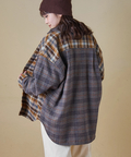 5. 【秋冬新作】ネル チェック 切替 ビッグシャツ