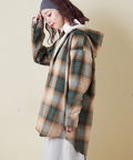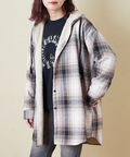 ■ふんわりあったかチェック裏ボアフードシャツ