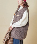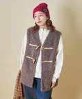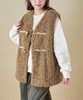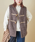 思わず触れたくなるようなふわもこのカーリーファーが印象的なトグルボタンベスト。