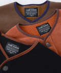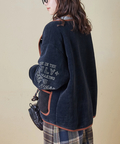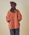 しっとりとなめらかなベロア素材に、内側はふかふかのボアを合わせた、見た目も着心地もあたたかな一枚です。