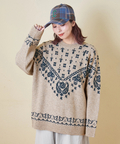 【秋冬新作】リサイクル ニット ペイズリー柄 ジャガード プルオーバー