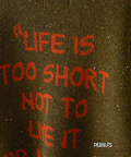 フロントには愛らしいスヌーピーのグラフィック、バックにはポジティブなメッセージロゴをオン。