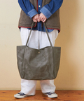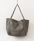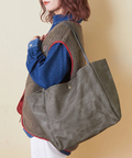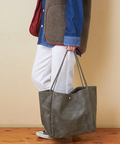 細めの持ち手がすっきりとした印象を与え、肩掛けでも手持ちでもバランスよく持てる万能バッグです。