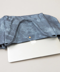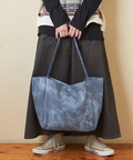 フェイクレザーにデニムのムラ染のような模様をプリント。