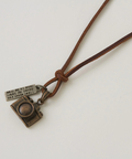 本革コードに、ミニカメラモチーフをあしらったユニークなネックレス。
