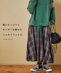 ウエストから寄せたギャザーが裾に向かって丸みをつくり、ふんわり立体感を演出。
