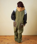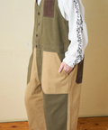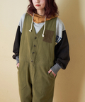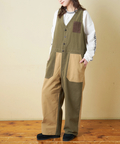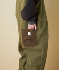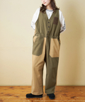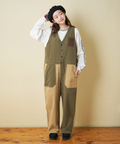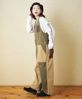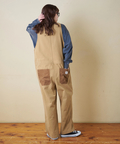 ピーチツイルとコーデュロイを組み合わせた、素材の表情が楽しめるサロペットパンツ。