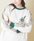 袖の配色切替が目を惹く、ユニフォーム風デザインを取り入れたスウェット。