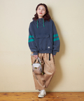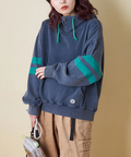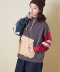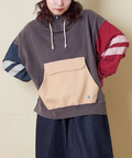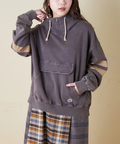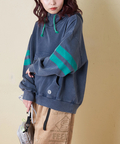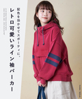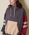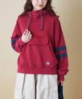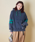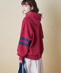 ■配色を効かせて。袖ラインプルオーバーパーカー