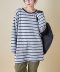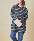 ボーダー柄を活かしたシンプルデザインとゆったりラフなシルエットで、抜け感のある着こなしに。
