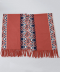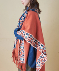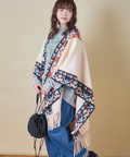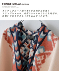 ネイティブムード漂うオルテガ柄が目を惹く、存在感たっぷりのフリンジショール。