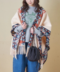5. 【秋冬新作】オルテガ柄 フリンジ ショール