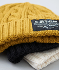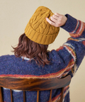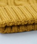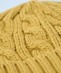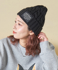 ざっくりとしたケーブル編みが印象的な、秋冬らしいニットキャップ。