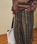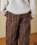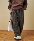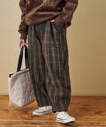 ■裏フリースであたたか。チェック柄コクーンパンツ