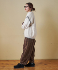 ゆとりのあるコクーンシルエットで腰まわりはラクに、足元にかけてすっきり見えるデザイン。