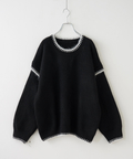 シンプルなニットに、ブランケットを連想させる温かみのあるステッチ柄がポイント。