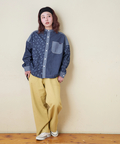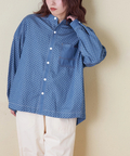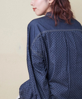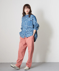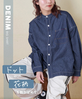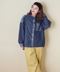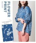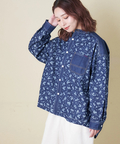 デニムに抜染プリントを施し、やさしい柄の表情を楽しめるビッグシャツ。