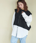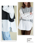 【春新作】スウェット × オックス レイヤード風 ビッグシャツ